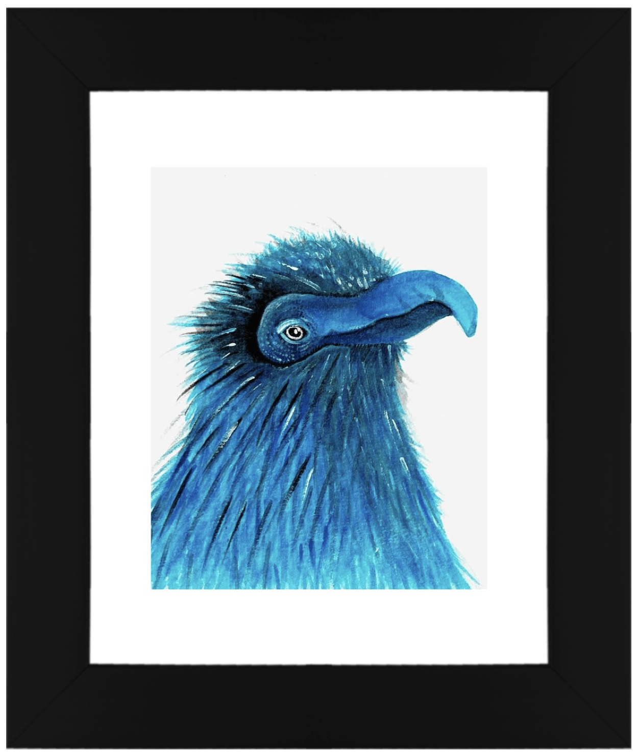 Birds of a Feather: Blue Black 11″x14″ frame, with matte print signed by artist.