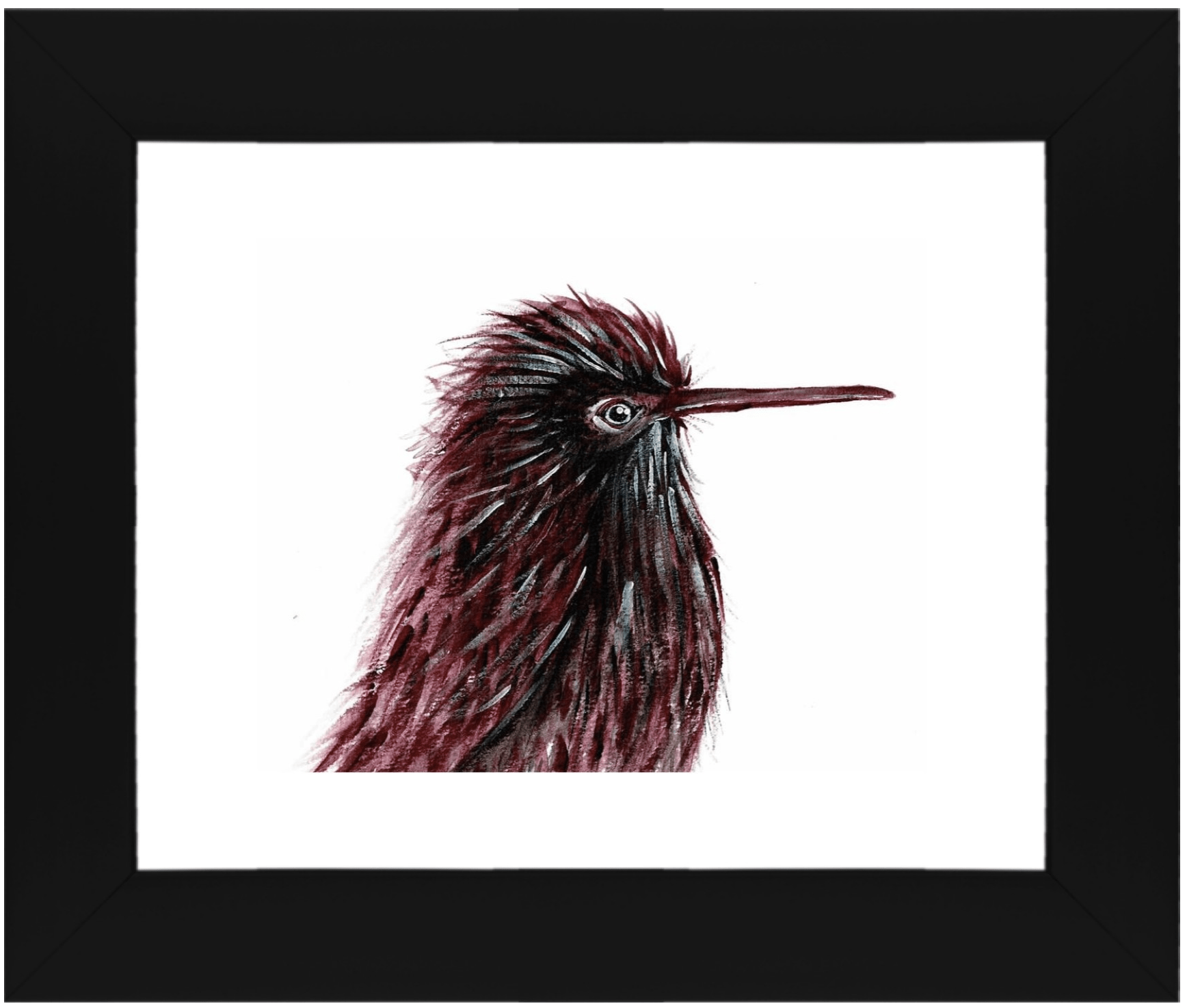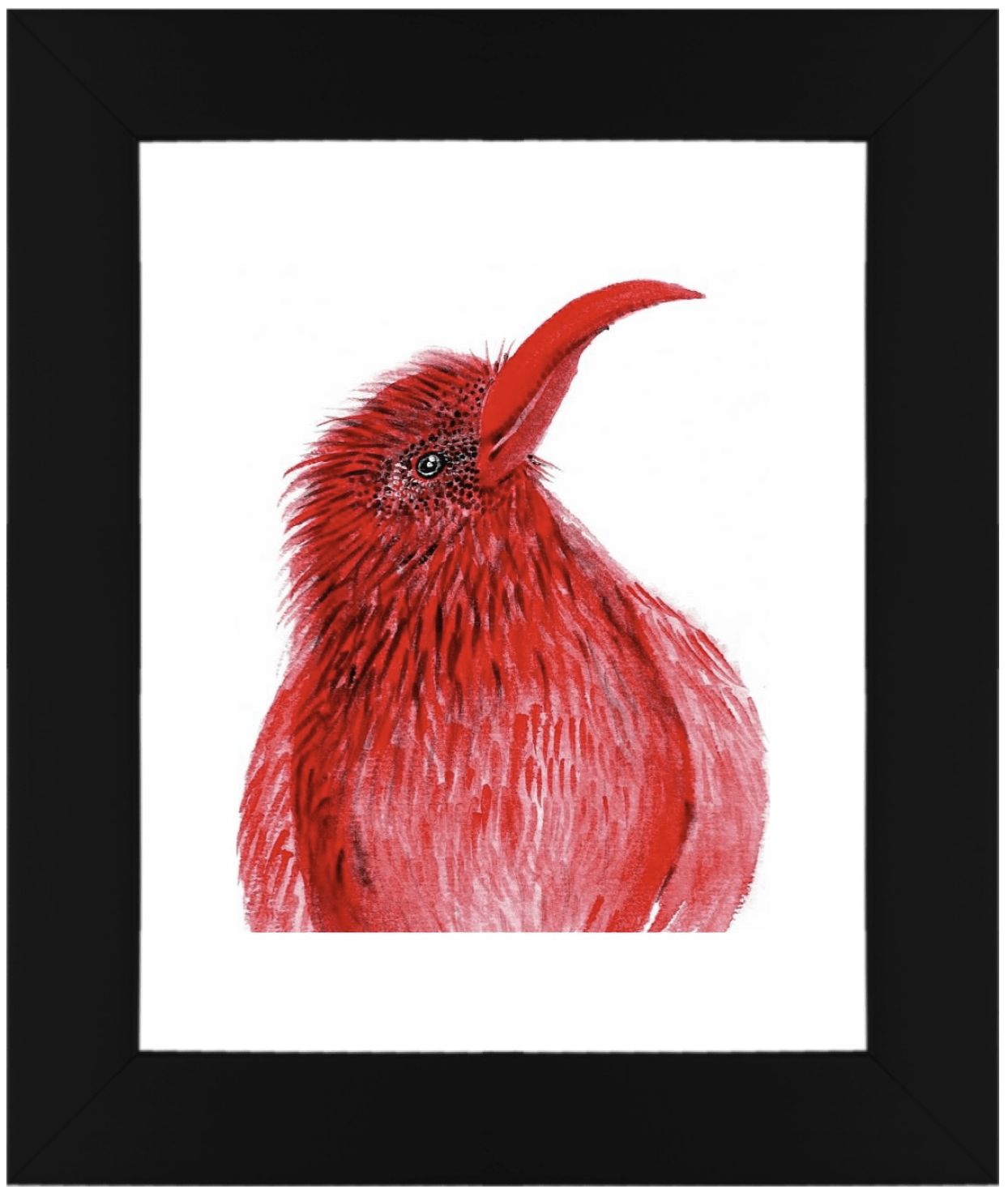 Birds of a Feather: Red Black 11″x14″ frame, with matte print signed by artist.