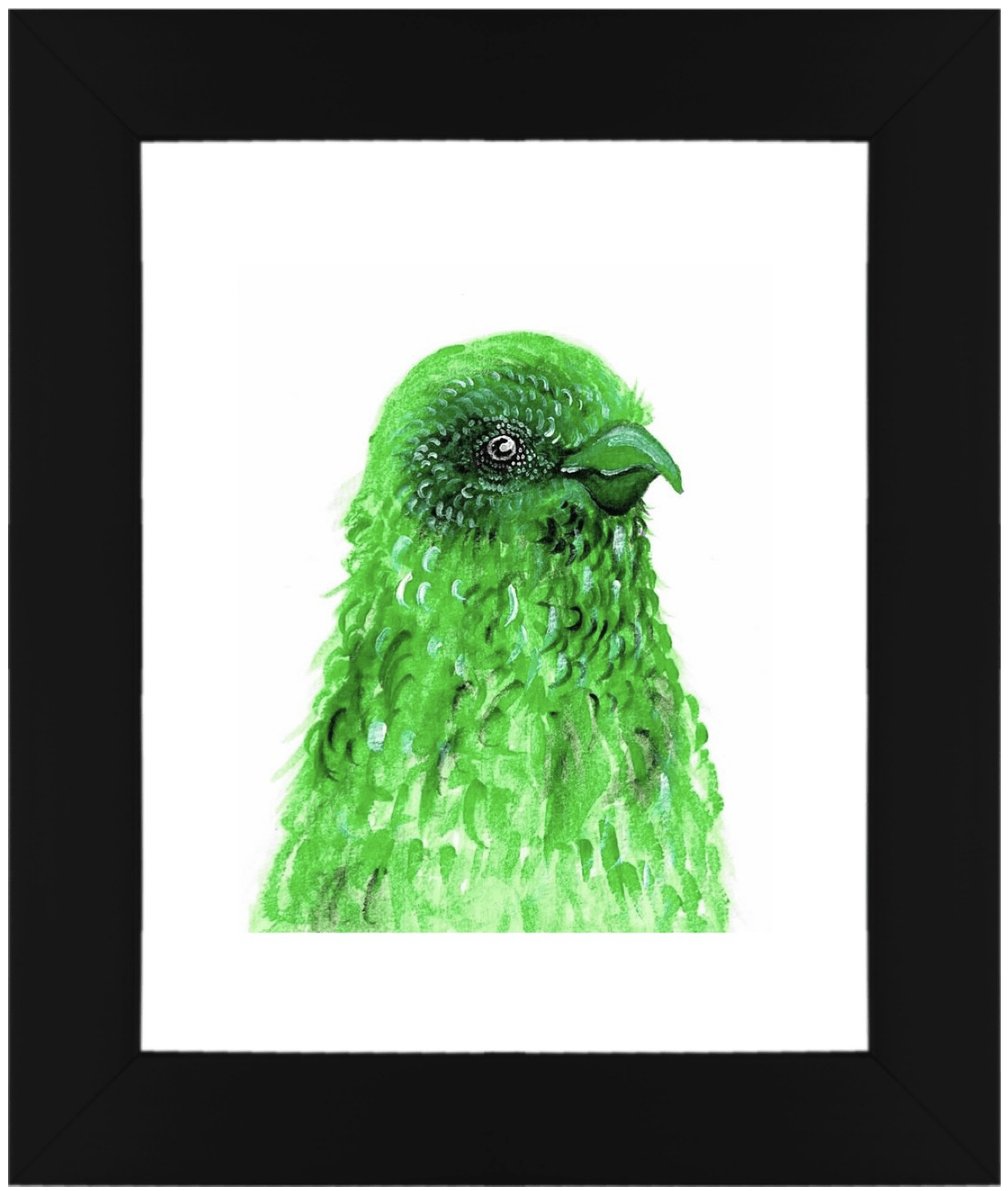 Birds of a Feather: Green Black 11″x14″ frame, with matte print signed by artist.